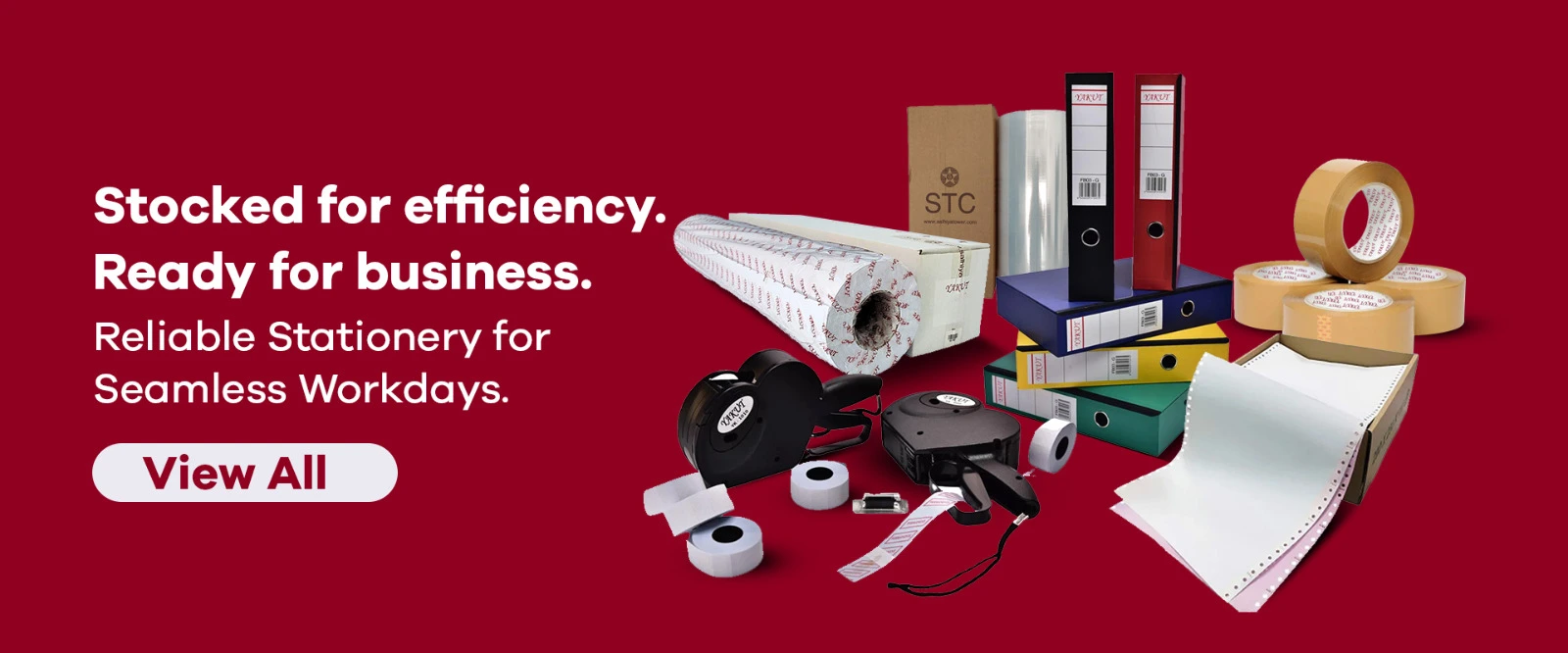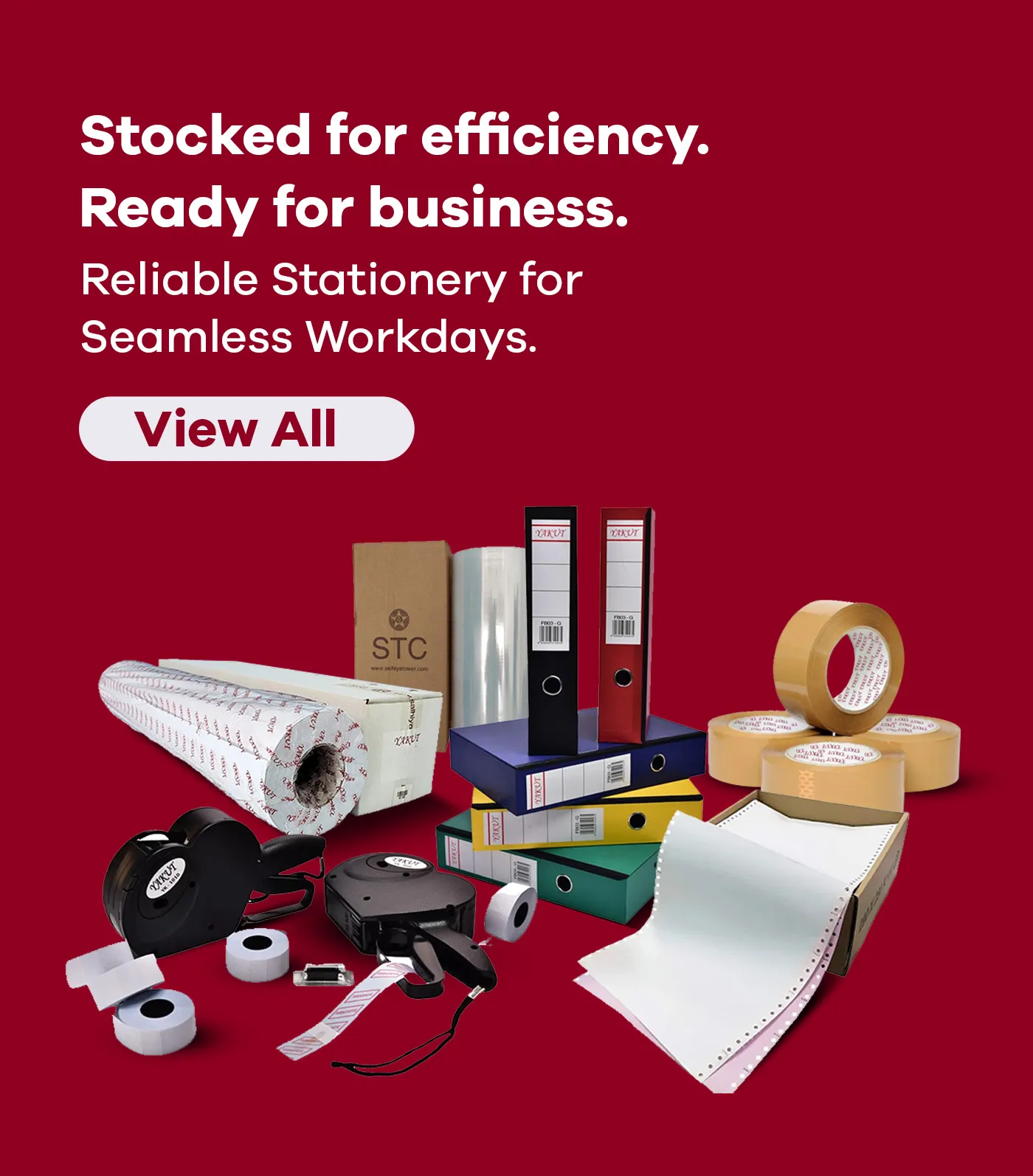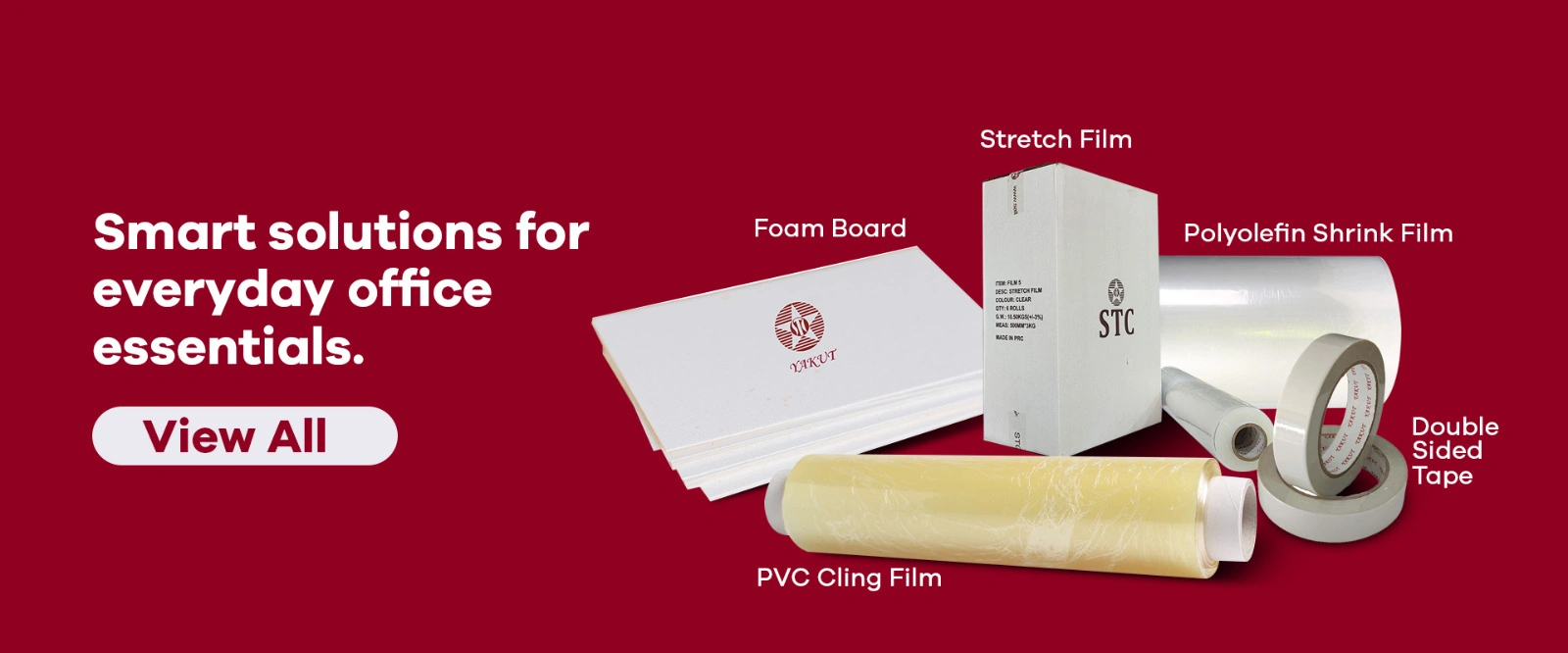 SEE OUR COLLECTIONTOP CATEGORIES Accessories (2) 2 products Yakut Tracing Pad 0 products Photocopy & Computer Papers (1) 1 product POS Rolls (Thermal / NCR / Plain Paper) (2) 2 products Barcode Labels & Wax Ribbons (2) 2 products Packing Tapes (1) 1 product Stretch Films (2) 2 products Polyolefin Shrink Films (1) 1 product PVC Cling Films (1) 1 product Box Files (1) 1 product White Presentation Binders (1) 1 product Plotter Rolls (1) 1 product Polyester & Glossy Rolls (1) 1 product Pricing Machine & Labels (1) 1 product TOP SELLING PRODUCTS Quick viewStaple Pins Stretch Films Read more Send Inquiry Quick viewMulti Media Roll POS Rolls (Thermal / NCR / Plain Paper) Read more Send Inquiry Quick viewYakut Wax Ribbon Barcode Labels & Wax Ribbons Read more Send Inquiry Quick viewYakut Barcode Rolls Barcode Labels & Wax Ribbons Read more Send Inquiry Quick viewYakut Thermal and Cash Rolls POS Rolls (Thermal / NCR / Plain Paper) Read more Send Inquiry Quick viewStretch Film Stretch Films Read more Send Inquiry Quick viewYakut White Presentation Binders White Presentation Binders Read more Send Inquiry Quick viewPVC Cling Film PVC Cling Films Read more Send Inquiry View All Products